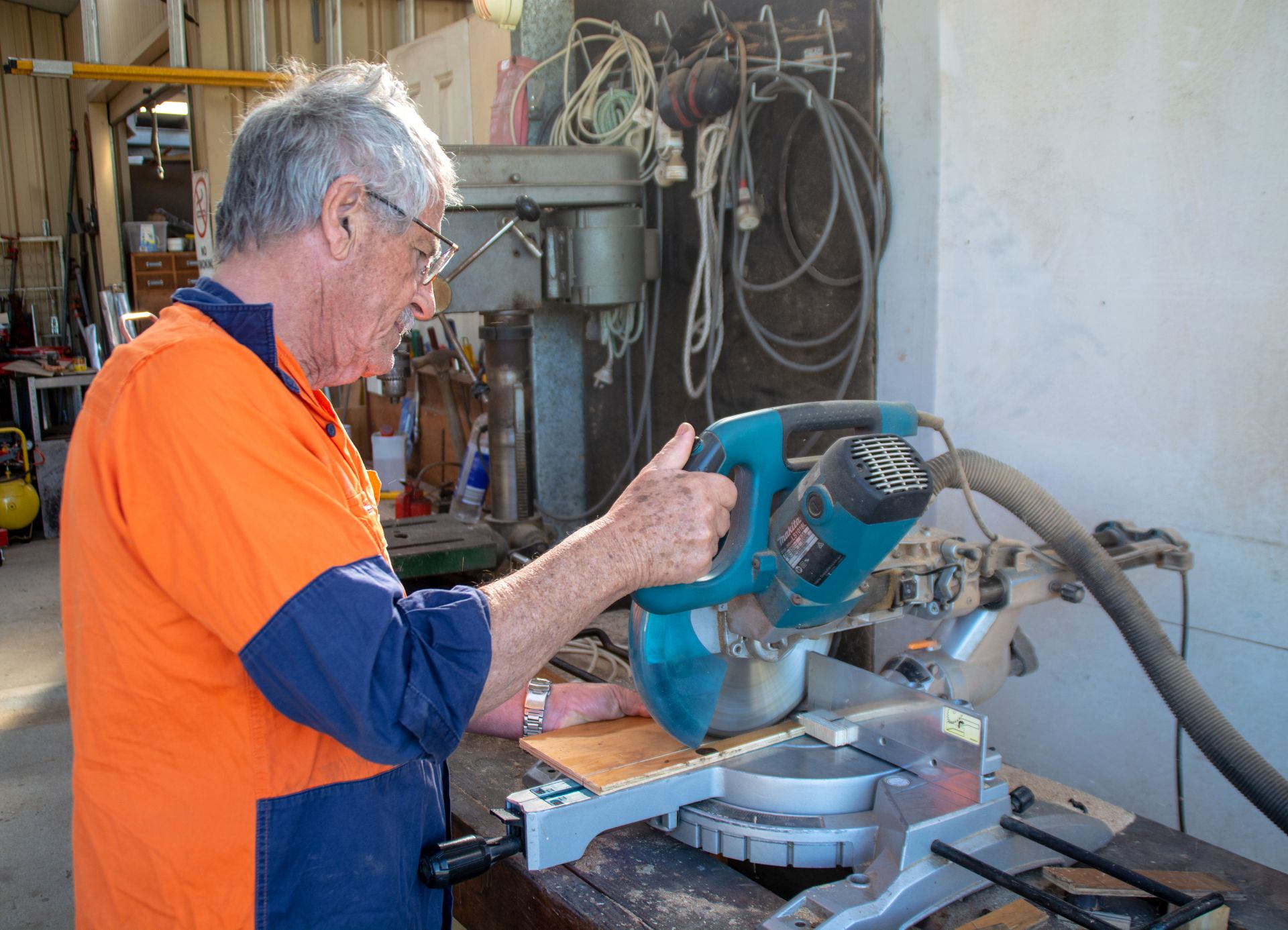 The Men’s shed has a spread of work areas that enable the safe use of potentially dangerous equipment as well as giving a bit of personal space. We all like to have room to make our mistakes and then press on to succeed in the task.